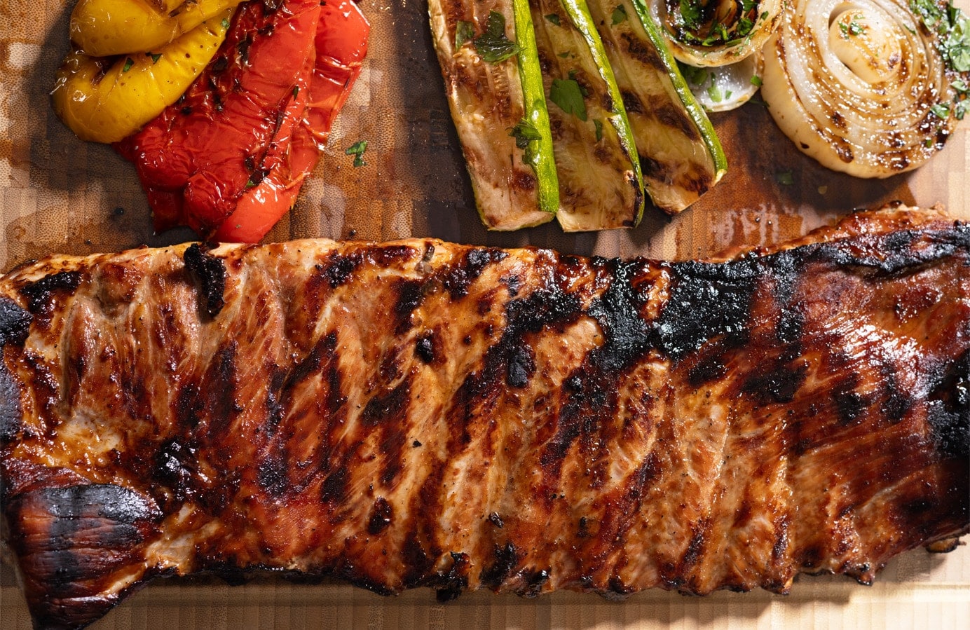 - Remove ribs from grill and let rest for 5 to 10 minutes before slicing into individual ribs and serving.